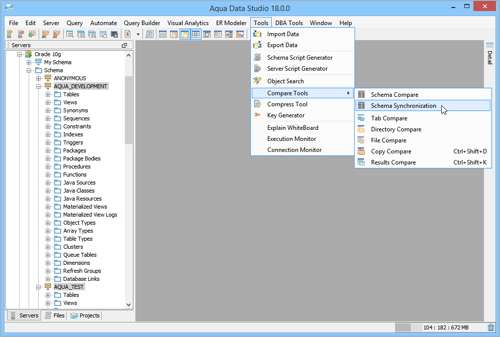 To launch the Schema Synchronization Tool from the Aqua Data Studio menu bar
