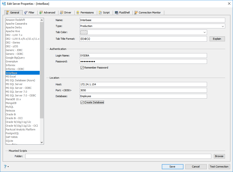 Edit Scripts in Server Properties in Aqua Data Studio: