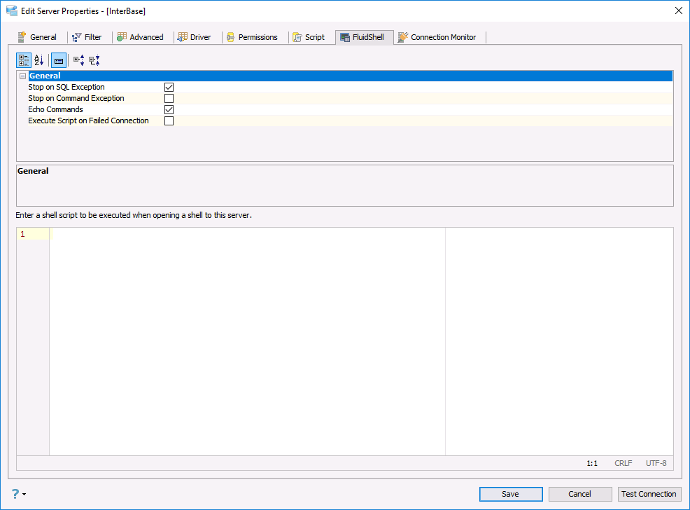 Edit Shell Scripts in Server Properties in Aqua Data Studio: