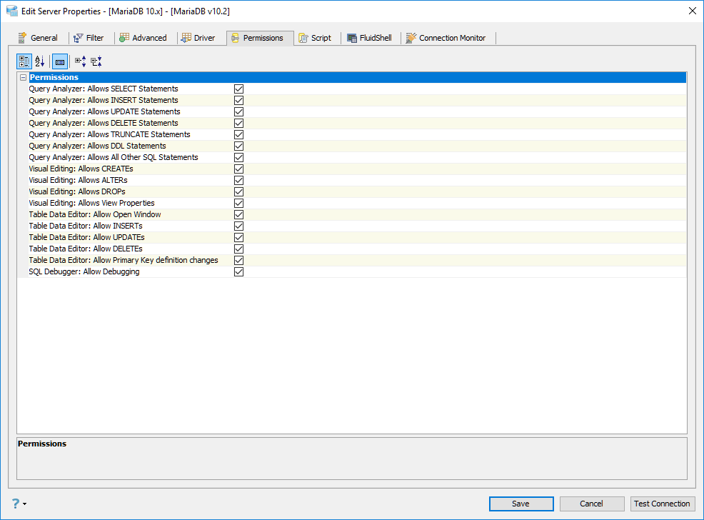 Edit the Permissions in Server Properties in Aqua Data Studio: