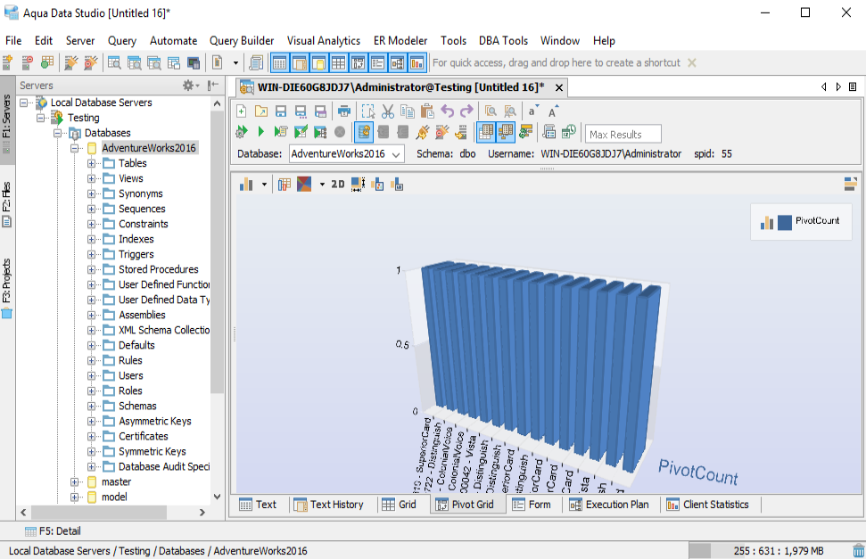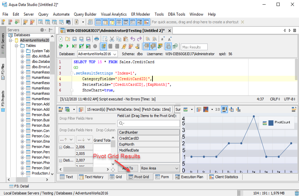 GRID and PIVOT GRID with charts in Aqua Data Studio