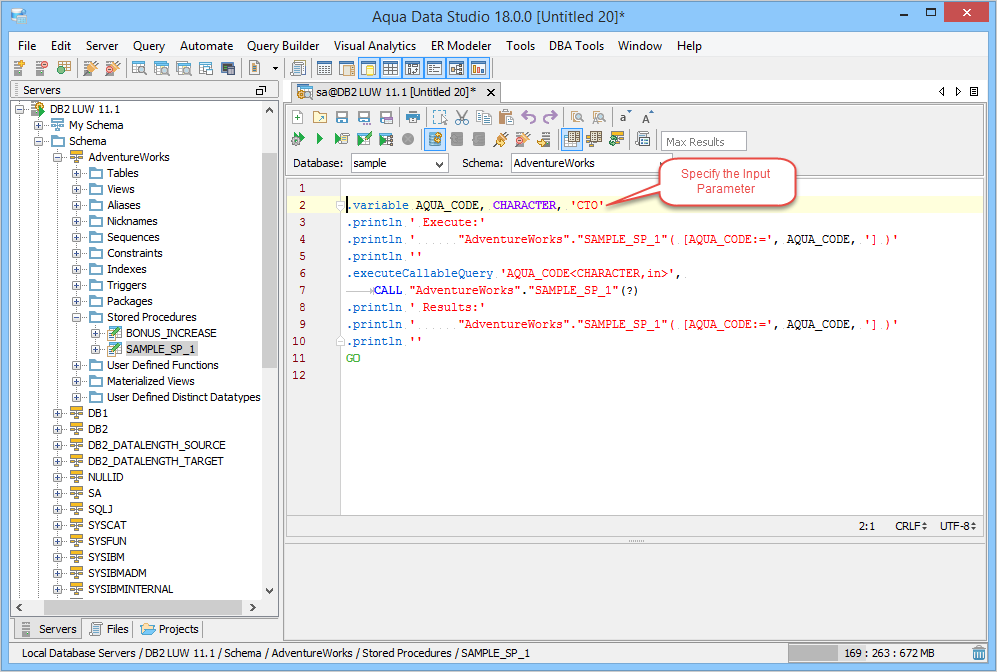 Creating and Executing a Sample Stored Procedure in Aqua Data Studio (DB2 UDB)