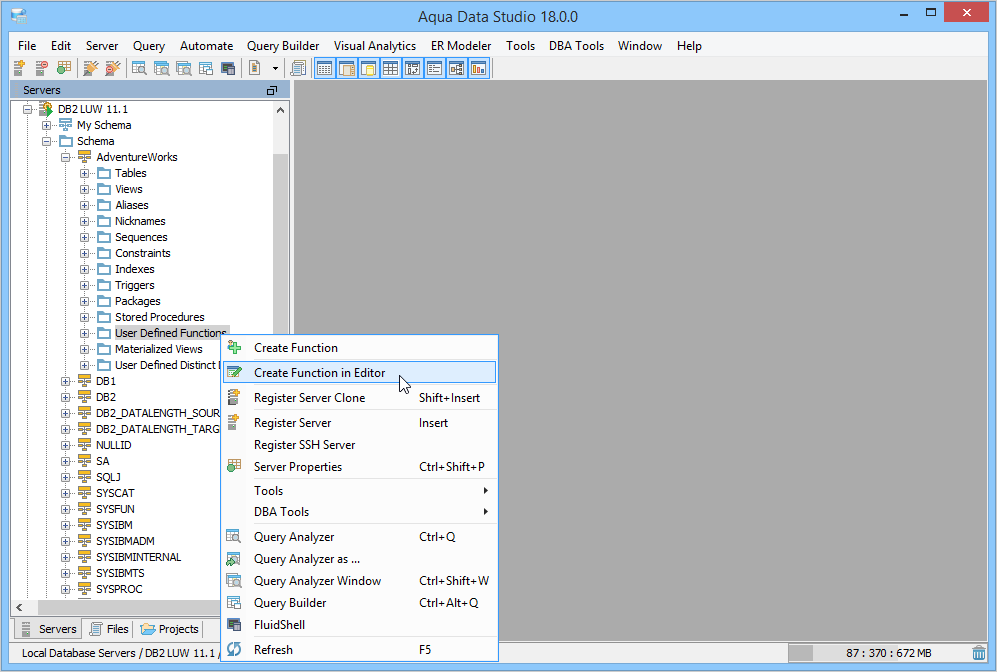 Executing DB2 USER DEFINED FUNCTION Connect to the Database Server and Open a Query Analyzer. Type the following and Execute to see the UDF result