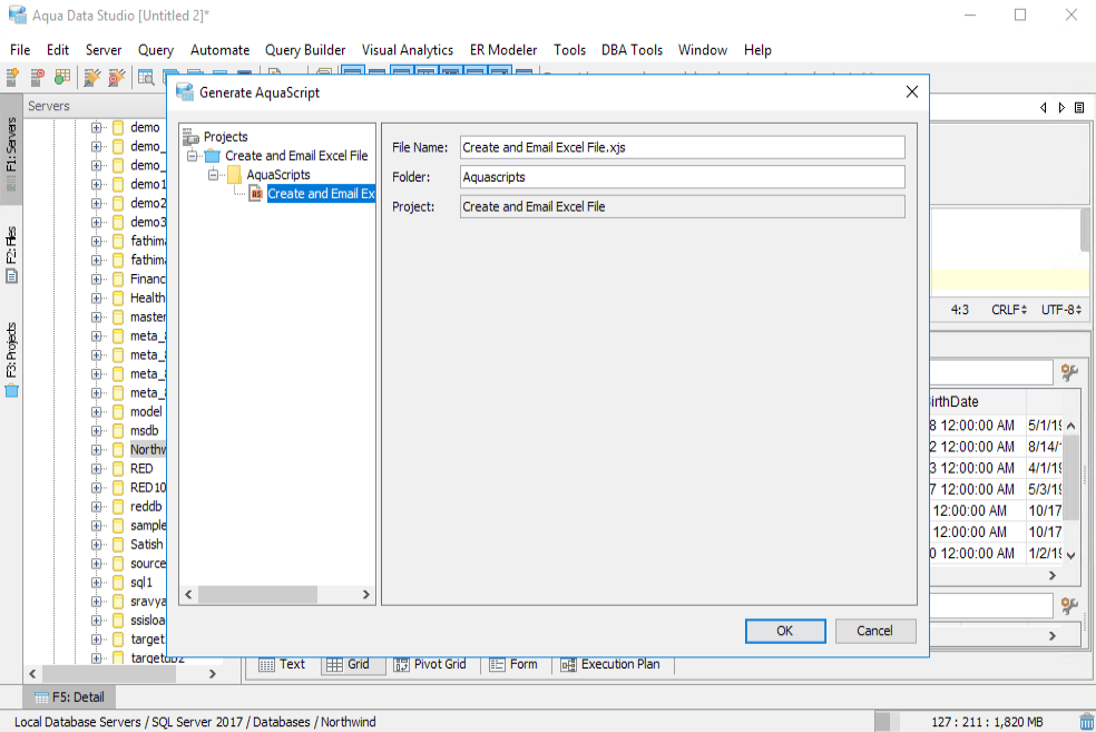 With the Query Analyzer Save Results feature, results of a statement execution can be saved to a variety of different file formats or copied to the clipboard for reuse or pasting somewhere else. The Save Results dialog can be launched by right clicking within a Query Results window and selecting "Save Results" from the pop-up menu. It can also be launched by clicking the Save Results icon, a floppy disk with a grid overlay, in the Query Analyzer Toolbar to the left of the Print icon. The Save Results option allows a wide variety of formats including, Delimited Data, INSERT statements, XML, HTML, and Excel worksheets. Selected Results can also be sent directly to the clipboard by clicking the "Save To Clipboard" button in the Save Results dialog. (Data Format for Excel does not save to clipboard). For cases where large results sets (100,000 rows or more) are being dealt with, it is best to use Save Results instead of Save To Clipboard. Copying a large result set to the clipboard dramatically increases the RAM in use. Save Results streams data directly to disk and it is highly recommended that you use "Save Results" or Export instead of copying large amounts of data from a Grid Result. Using the Operating System's clipboard for a large copy effectively doubles the amount of RAM in use because the Grid Result is already holding those items in memory. Saving to a file uses much less RAM, as a file is streamed to disk instead of being kept whole in memory. Below are the steps for Save Results and a list of all of its options and settings.