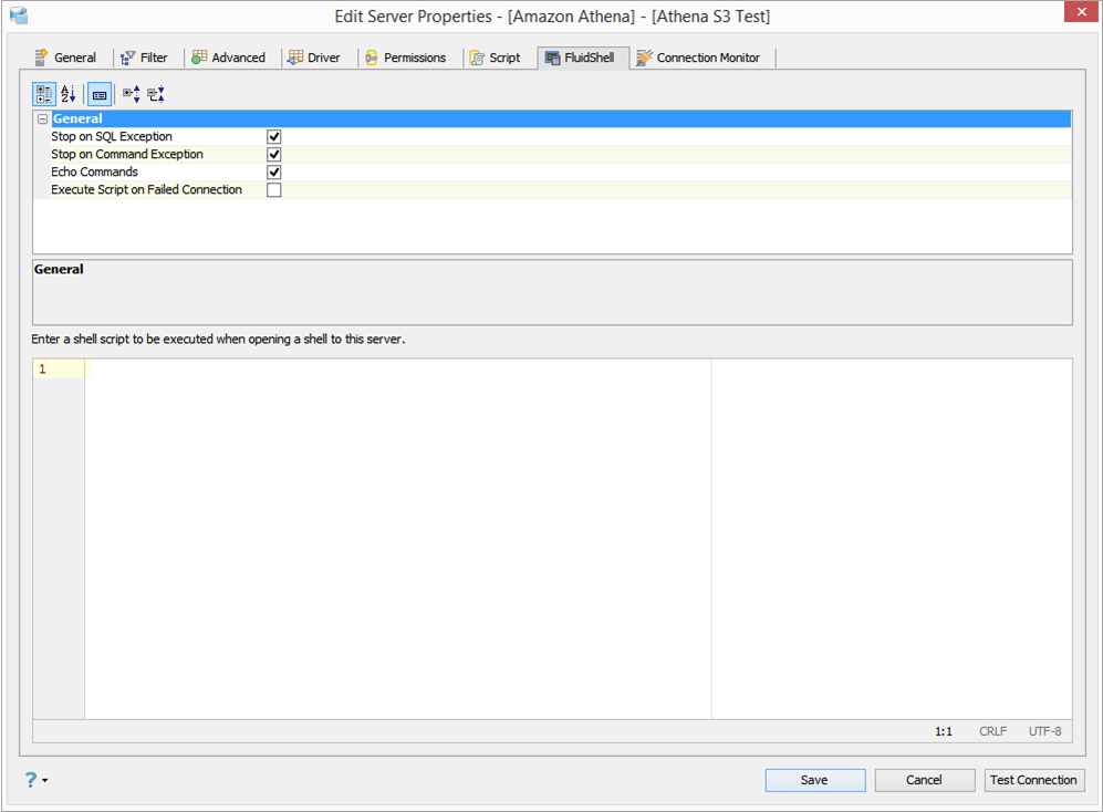 Edit Shell Scripts in Server Properties in Aqua Data Studio: