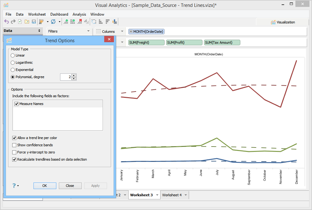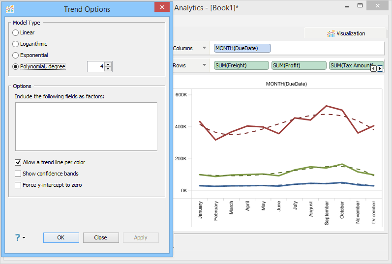From this dialog, you can select the Trend Line Model Type as: