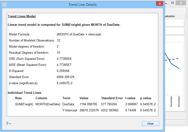 If Trend Line Per Color is enabled for a Multi Line Chart, selecting [Analysis > Trend Lines > Describe Trend Model...] will produce Trend Line Details for every Trend Line visible in your chart.
