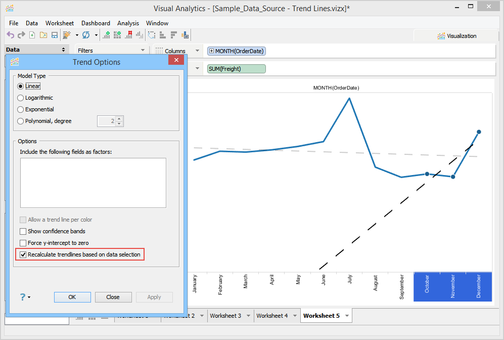 You can also control from where the trend line should start. In the Time Series Options area, you can set one of the following options:
