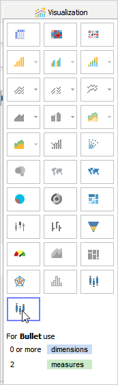 Bullet chart is a powerful way of comparing the actual value with a target value and provides a richer data display using much less space compared to dashboard gauges and meters.