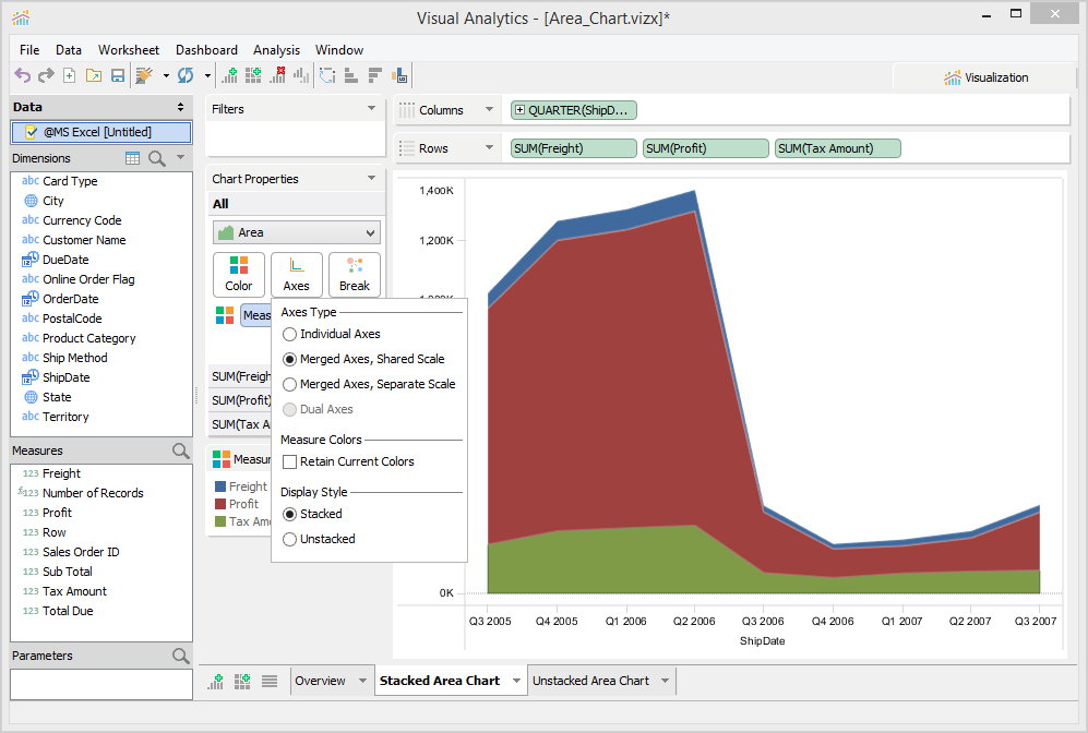 5. Select [Merged Axes] and [Unstacked] from Chart Properties Axes.