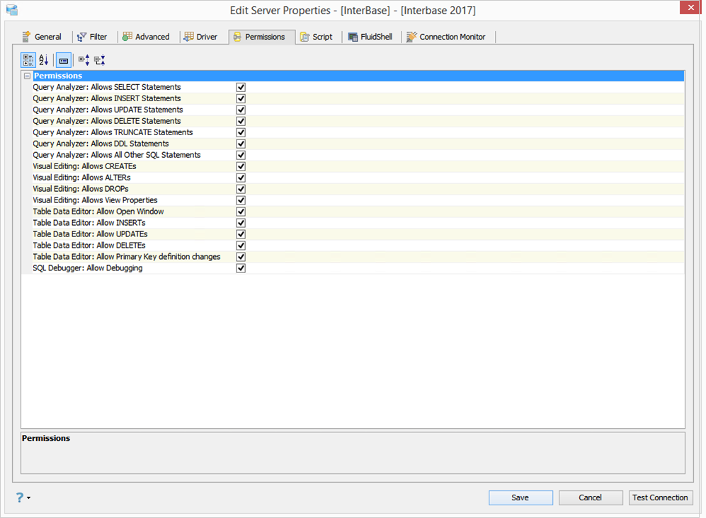 Edit the Permissions in Server Properties in Aqua Data Studio: