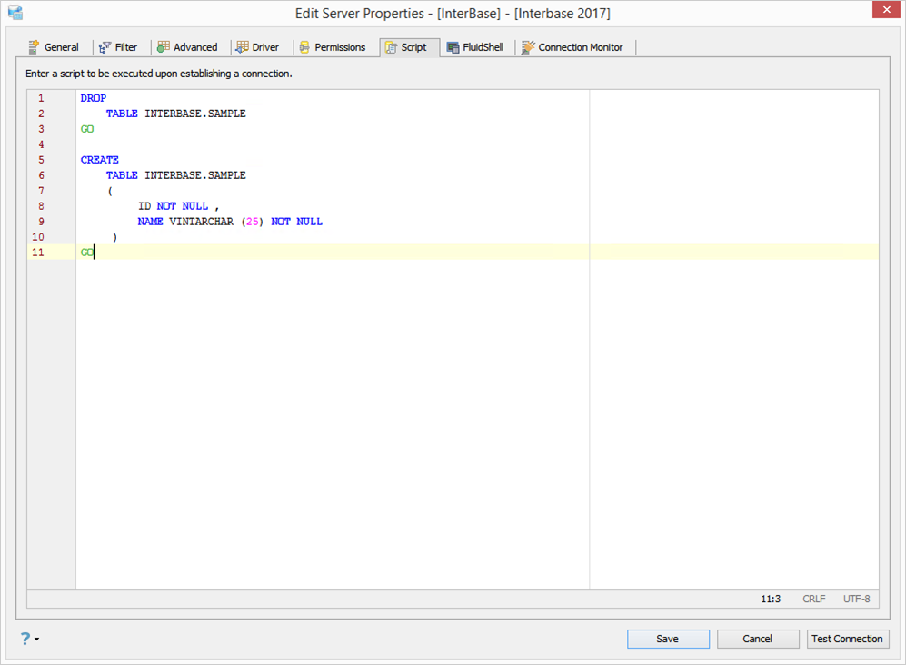 Edit Scripts in Server Properties in Aqua Data Studio: