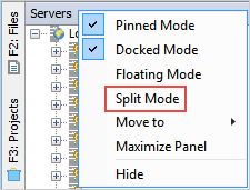 Split Mode is turned ON for Servers panel, turned OFF for Projects panel. |