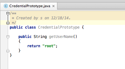 Contents of Java class CredentialPrototype: (hard-coded the username for illustration purposes)