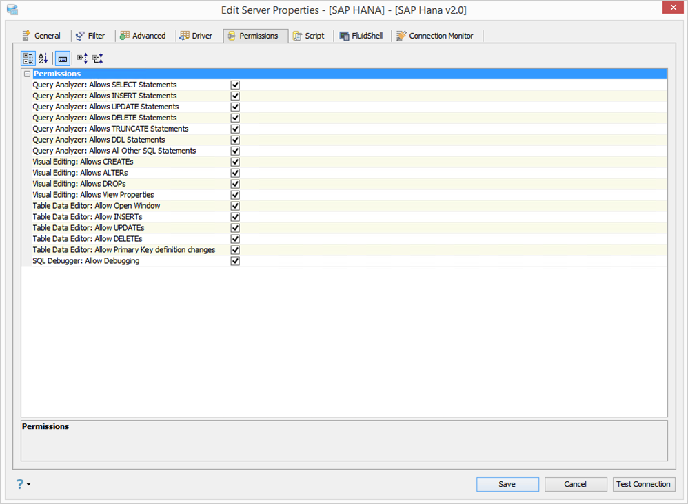 Edit the Permissions in Server Properties in Aqua Data Studio: