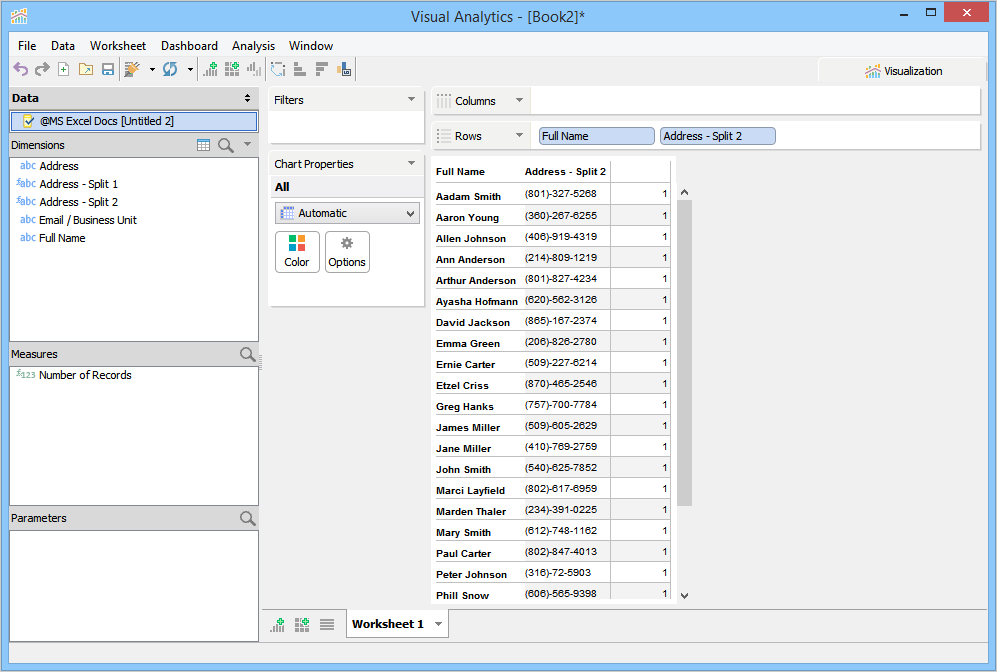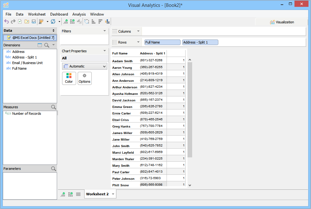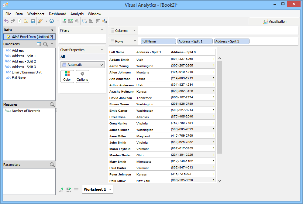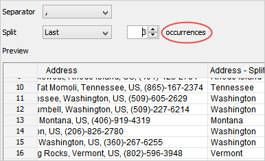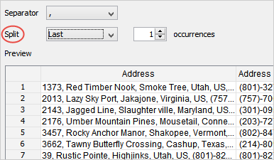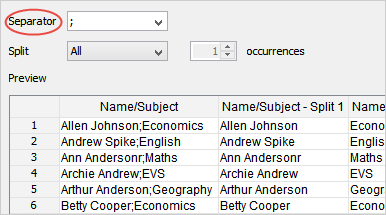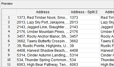 Displays how Visual Analytics splits the string. Preview window displays 20 unique records from the field on which split is applied.
