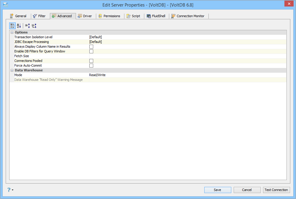 Edit the Server Properties to use Advanced Properties in Aqua Data Studio: