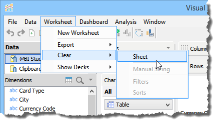 Clearing a worksheet removes everything on the current worksheet at once. Therefore, clear the worksheet only when you are sure of the clear action. You can clear individual decks one at a time by using their menu triangles. To save your previous work, you can duplicate a sheet before deleting the worksheet.