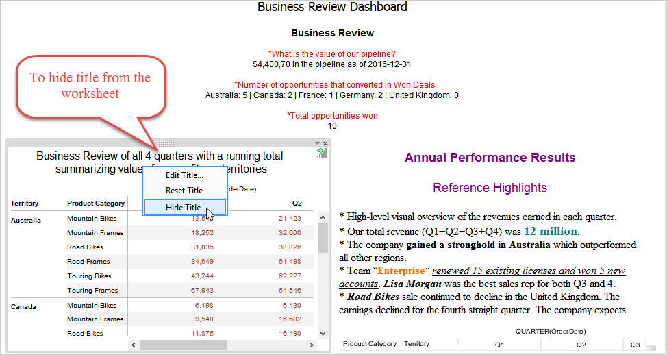 It is a good idea to duplicate a sheet that contains a view you have already built before you begin to make changes, so you have a copy of your previous work. You can also use Undo and Redo if you need to undo/redo an action you performed.