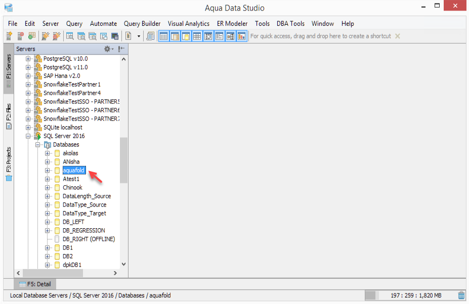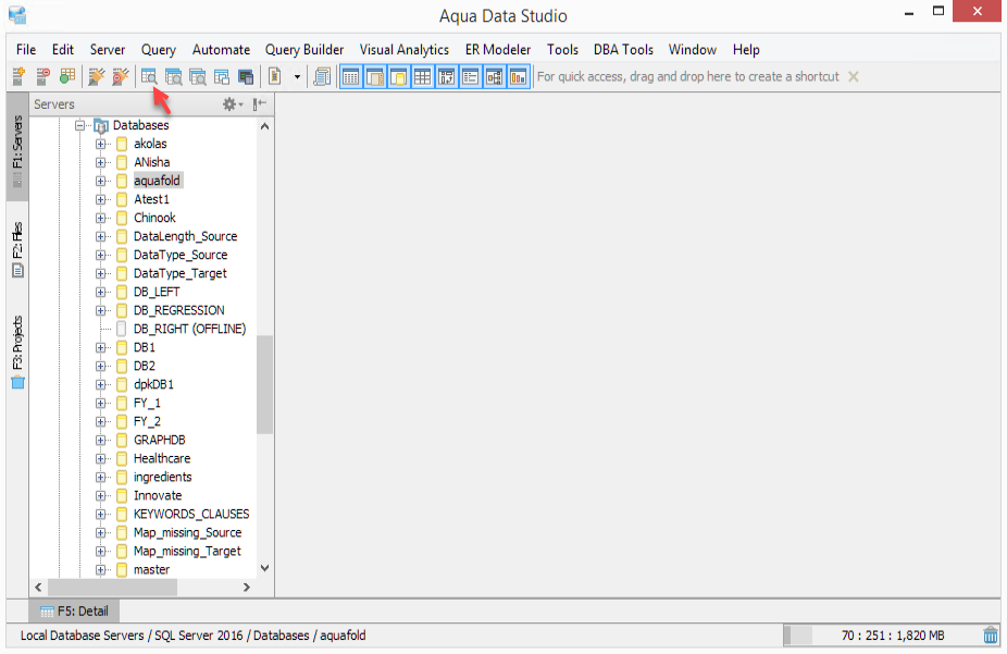 To execute and edit a SQL query, you have to Register a Server in Aqua Data Studio. To make sure you are using the correct database, it is always best to launch the Query Analyzer tool from the server in the Schema tree, on the left side list.