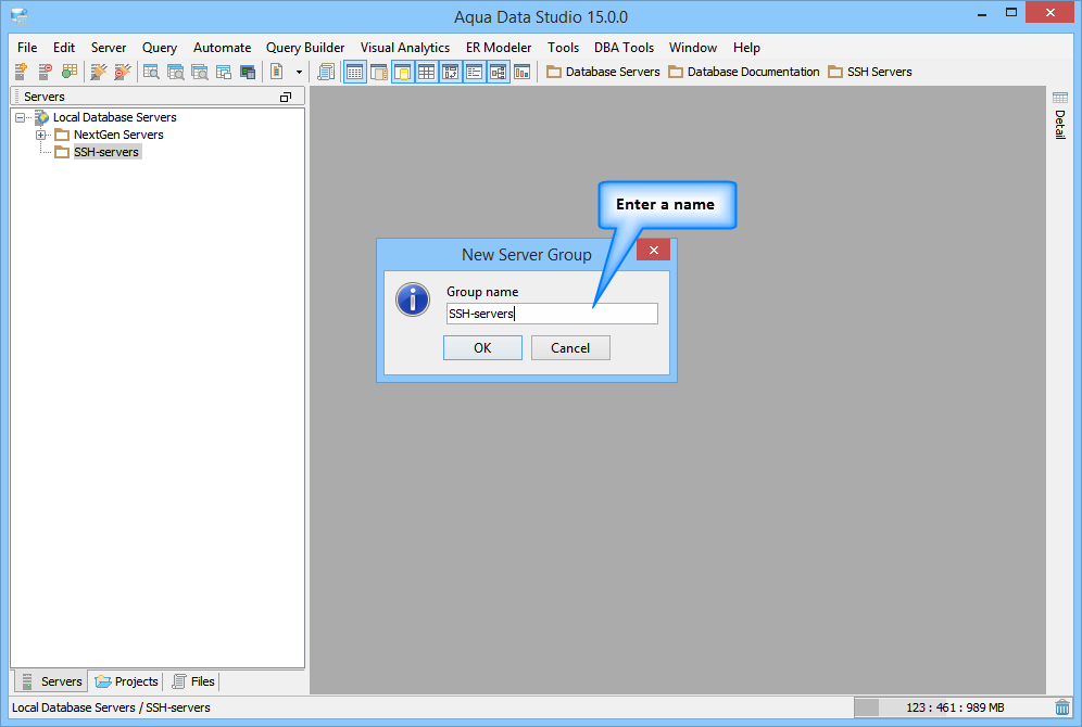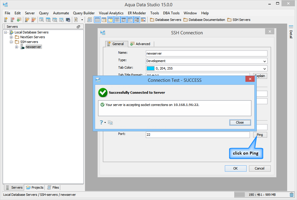 To create a SSH Server Clone of an already Registered Server, in Aqua Data Studio: