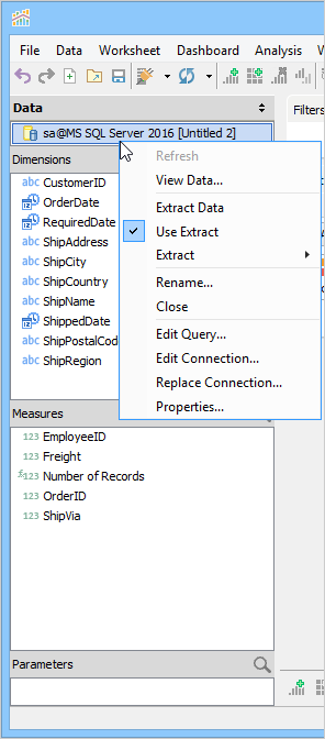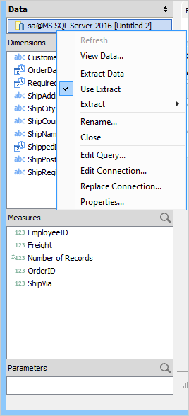 Right click on this Data Source in the Data Pane and notice the check mark by [Use Extract], indicating it is currently in use.