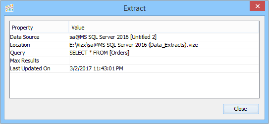Once an extract is created you can view its properties by right-clicking on it and selecting [Extract > Properties].