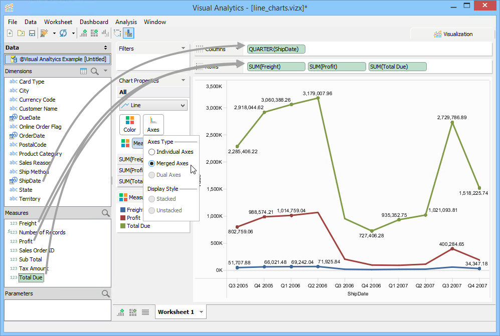 For more on how to modify charts, such as showing Independent Axes and Dual Axes, see Chart Properties Axes.