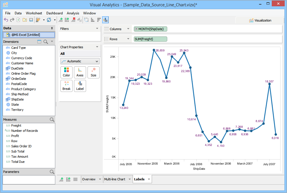7. Enable data labels by selecting [Analysis > Show Data Labels] from the toolbar menu.