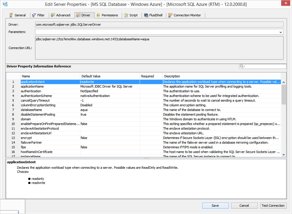 Edit the Drivers Properties to use Driver Parameters in Aqua Data Studio:
