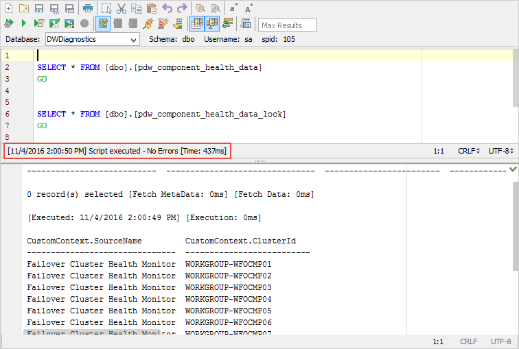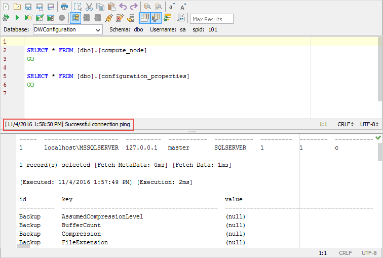 | Action from the Toolbar | Ping | Execute | Auto-Commit |