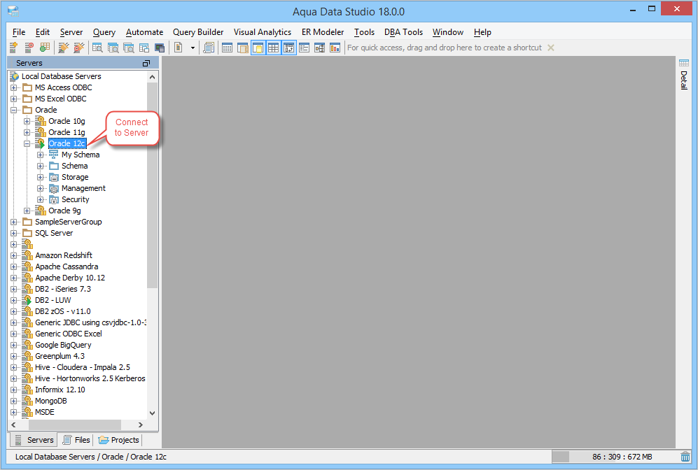 Aqua Data Studio provides visual editors for creating database Storage objects. By navigating the schema browser you may locate the Storage container (a hard drive shaped icon) underneath server connections. Storage objects vary based on database vendor and version.