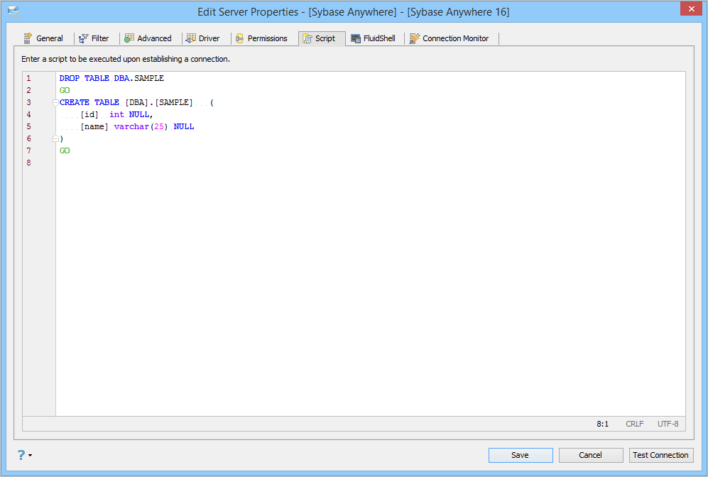 Edit Scripts in Server Properties in Aqua Data Studio: