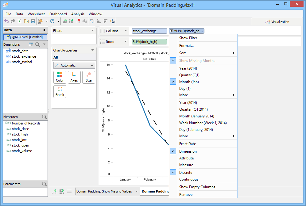 Visual Analytics offers you the ability to "fill in" missing data in your data set. There are two main types of Data Densification in Visual Analytics: