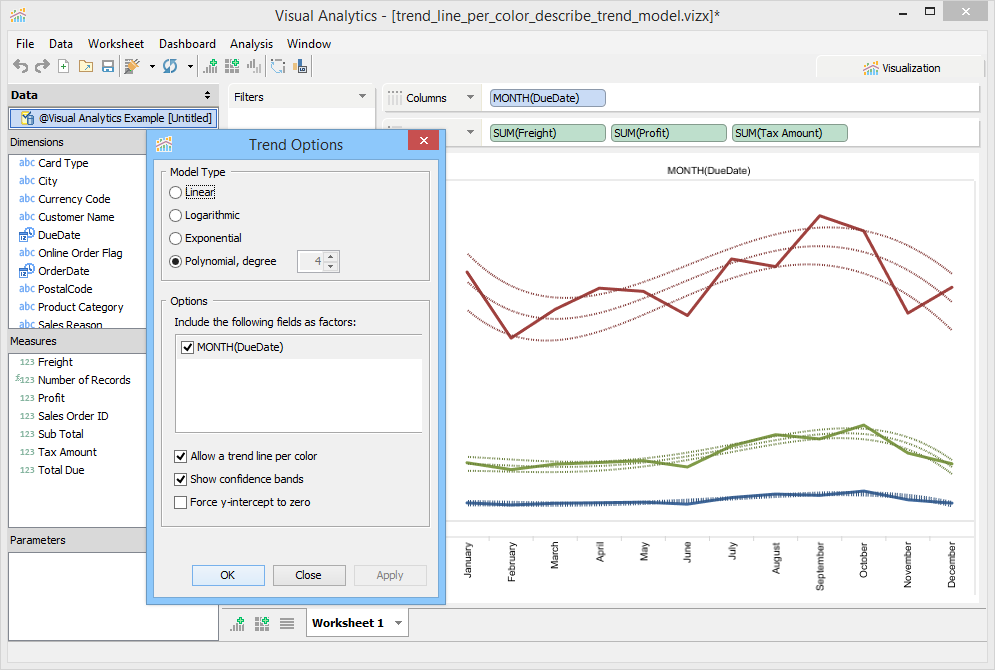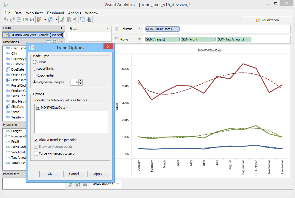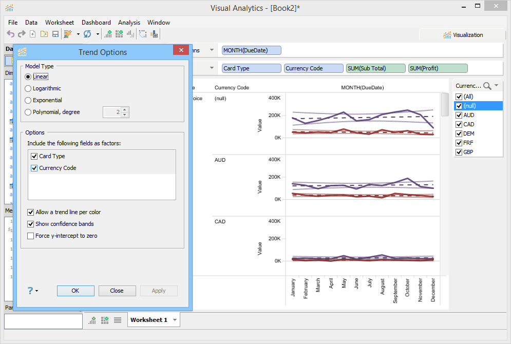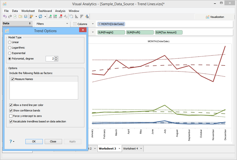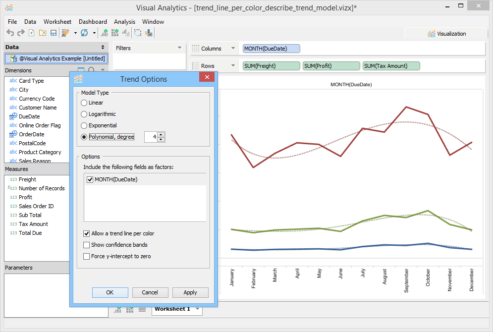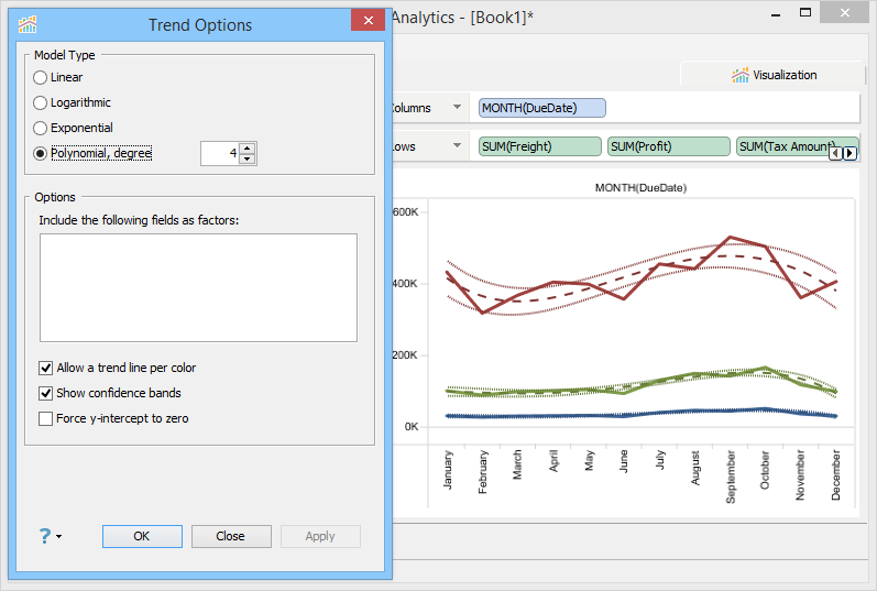 From this dialog, you can select the Trend Line Model Type as: