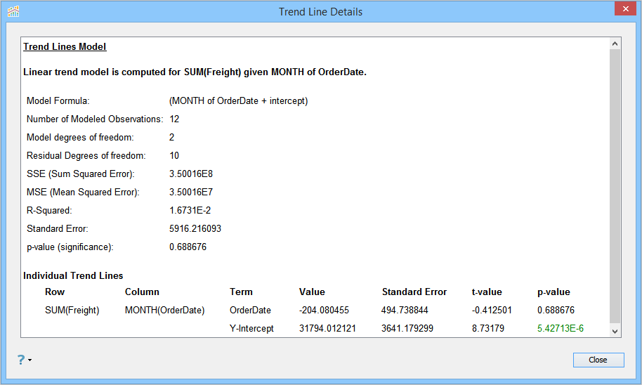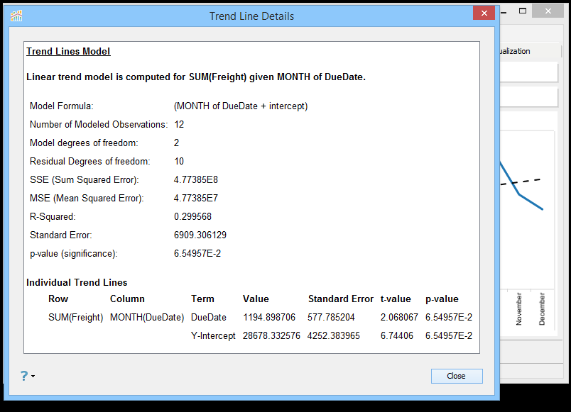 If Trend Line Per Color is enabled for a Multi Line Chart, selecting [Analysis > Trend Lines > Describe Trend Model...] will produce Trend Line Details for every Trend Line visible in your chart.