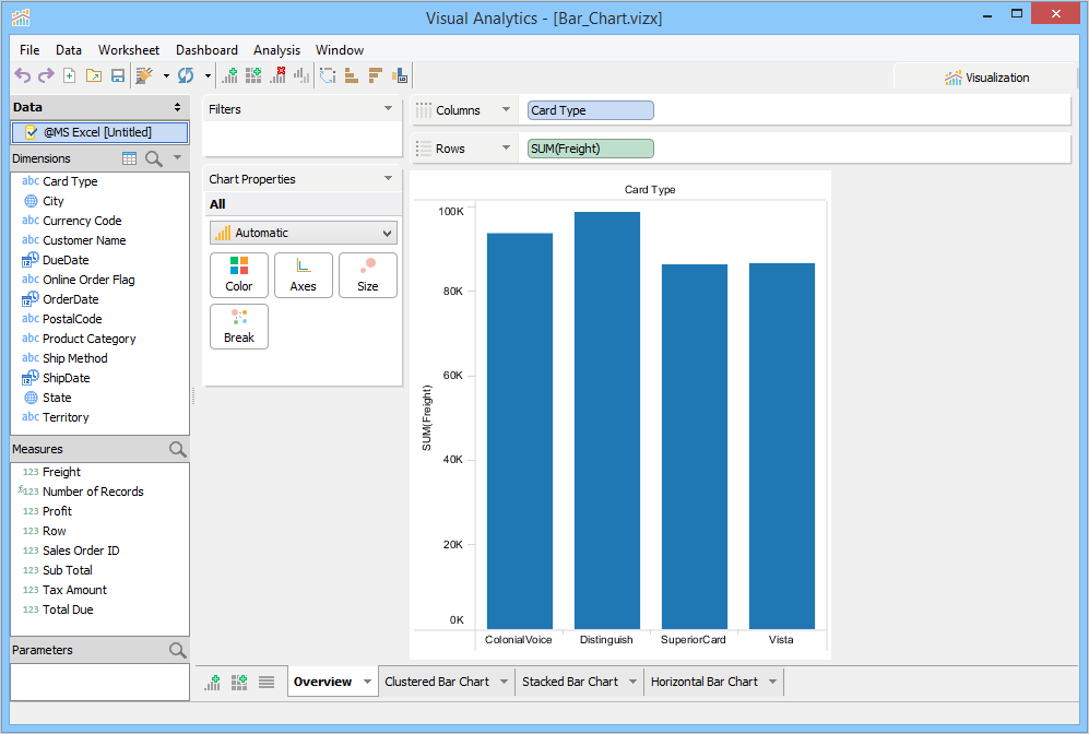 5. Select [Bar] in the Chart Properties dropdown.