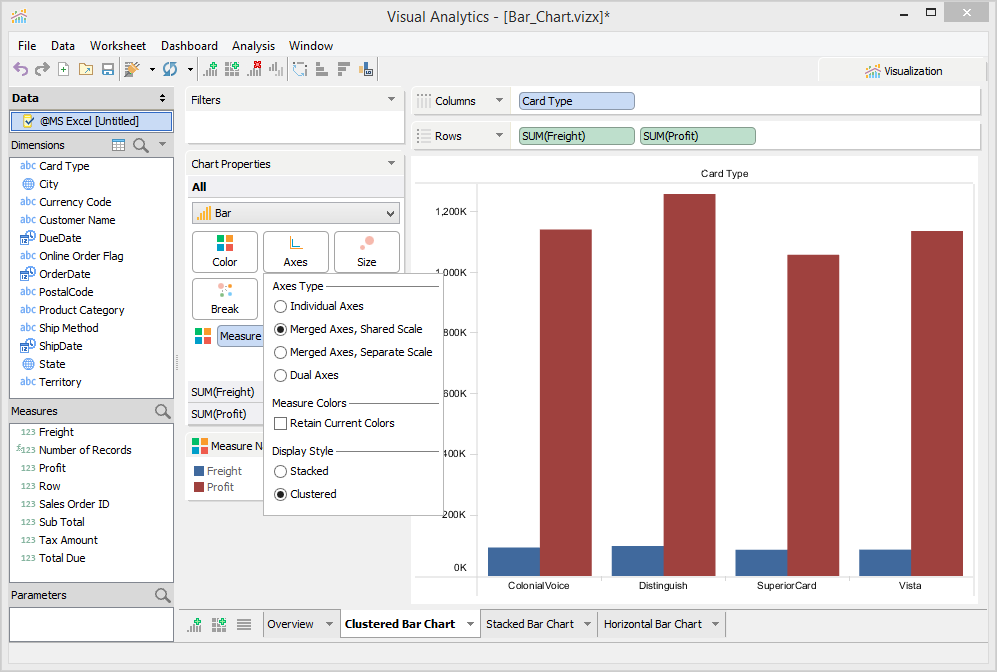 For more on how to modify charts, such as showing Independent Axes and Dual Axes, see Chart Properties Axes.