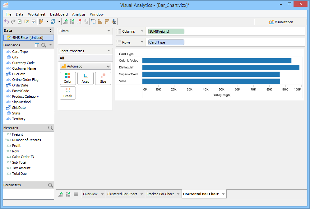 3. Drag Freight from Measures to the Columns deck.