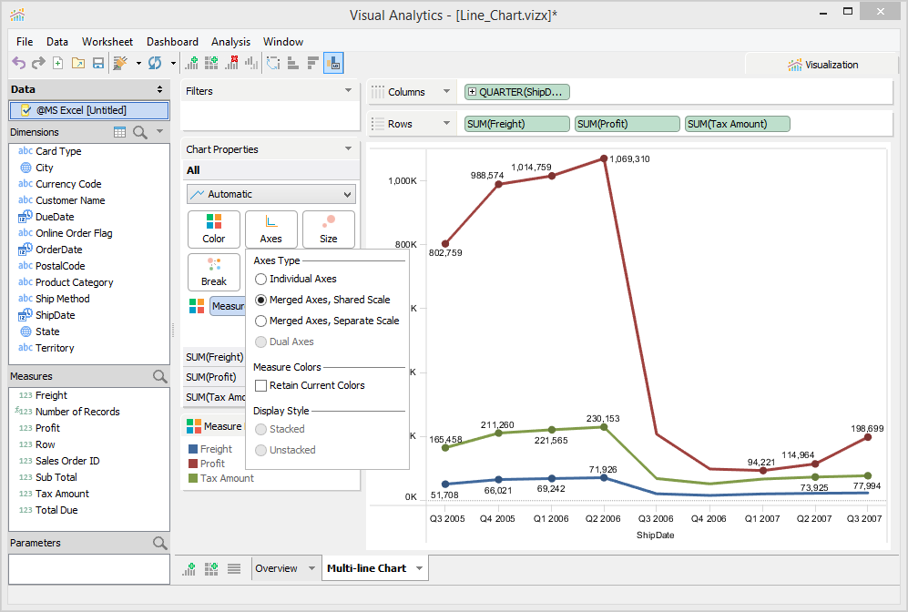 7. Select [Merged Axes] from Chart Properties Axes.