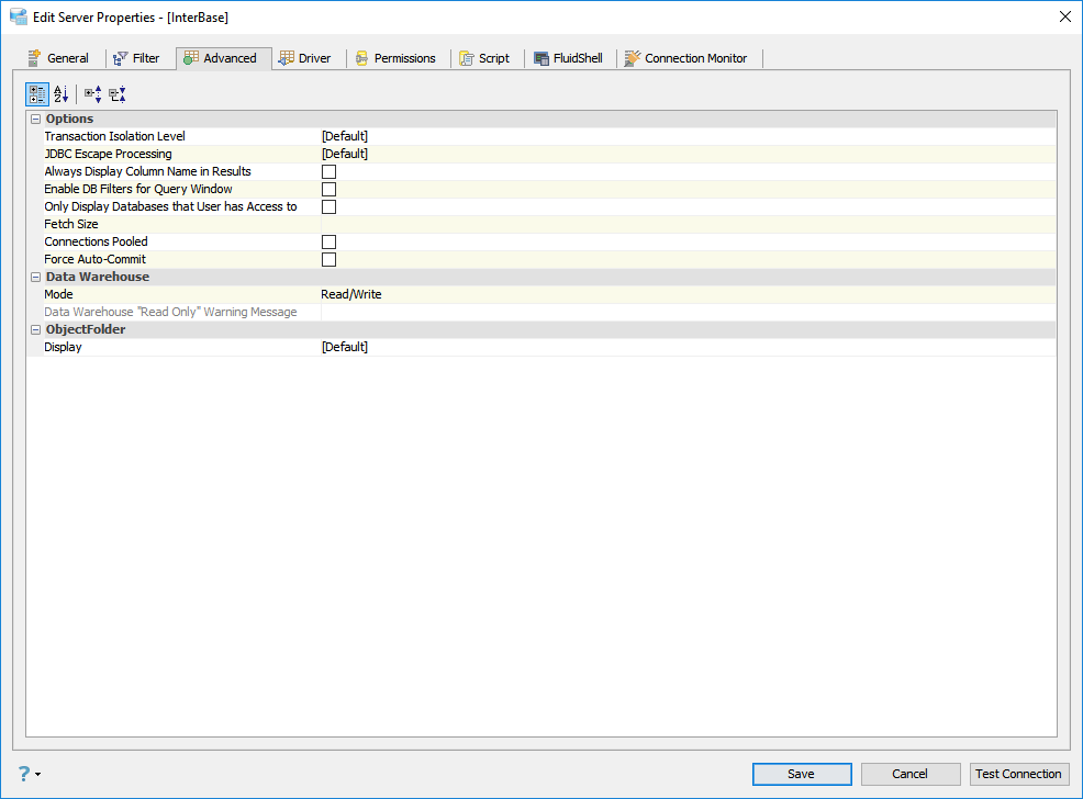 Edit the Server Properties to use Advanced Properties in Aqua Data Studio: