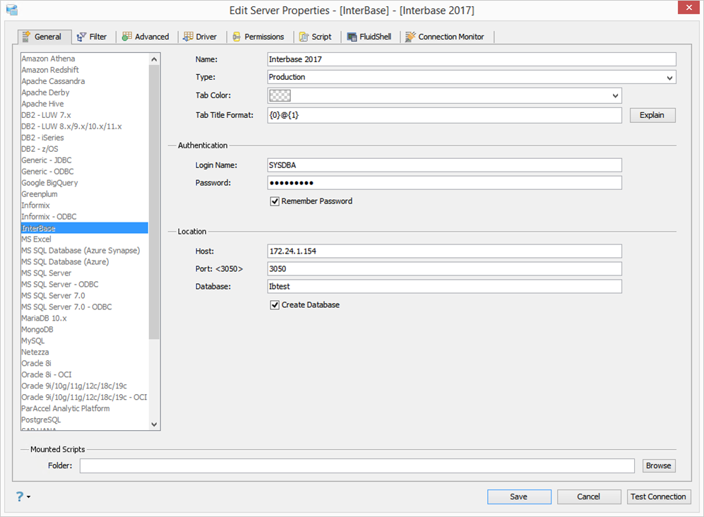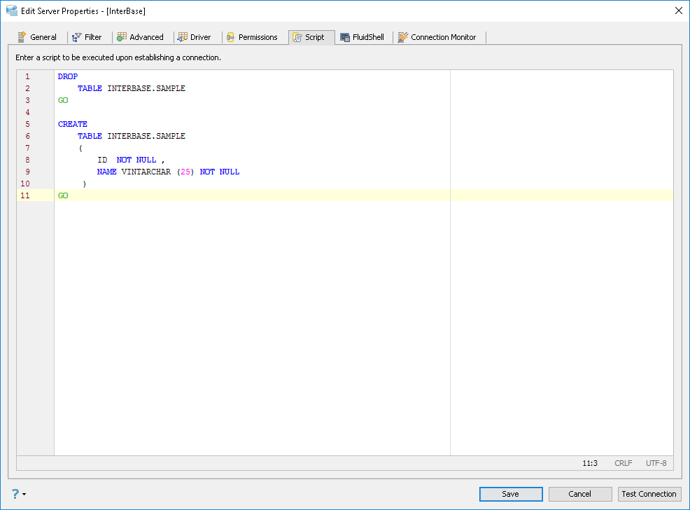 Edit Scripts in Server Properties in Aqua Data Studio: