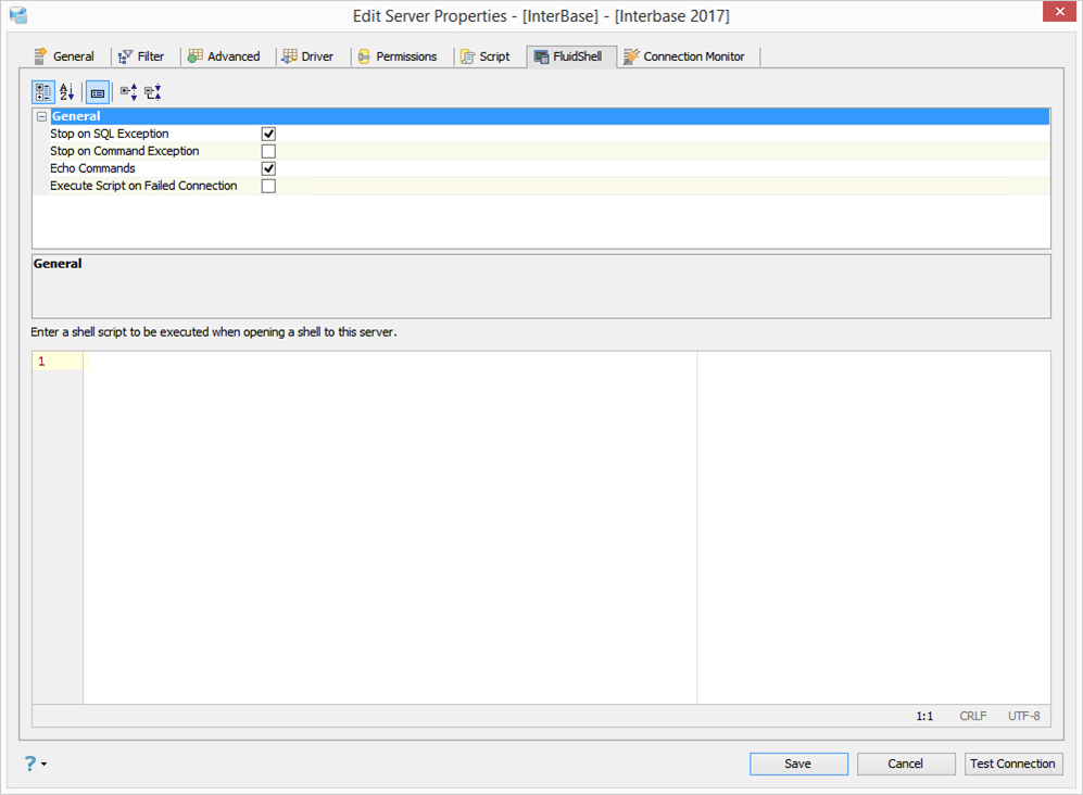 Edit Shell Scripts in Server Properties in Aqua Data Studio: