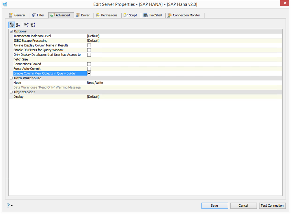 Edit the Server Properties to use Advanced Properties in Aqua Data Studio: