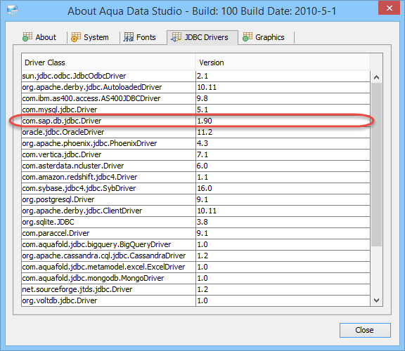 To update the Aqua Data Studio JDBC drivers for SAP Hana you need to overwrite the Aqua Data Studio ngdbc.jar file. Below is a listing of the Aqua Data Studio library directory [ADS_INSTALL]\lib\drivers\ ...