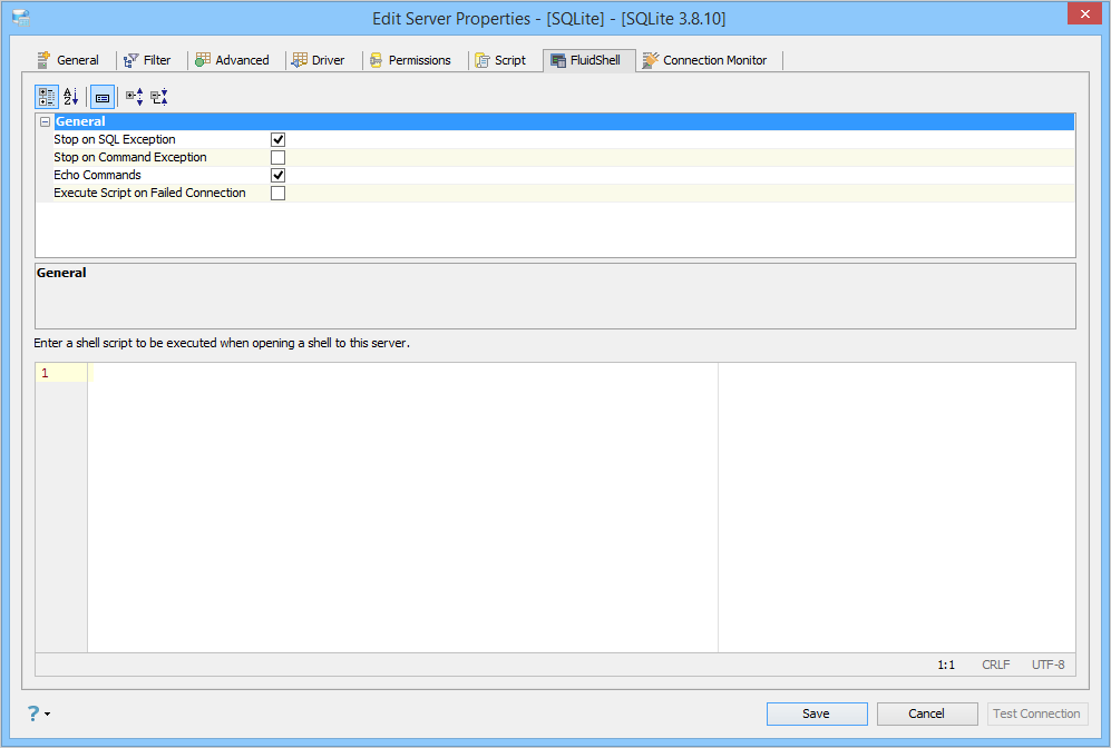 Edit Shell Scripts in Server Properties in Aqua Data Studio: