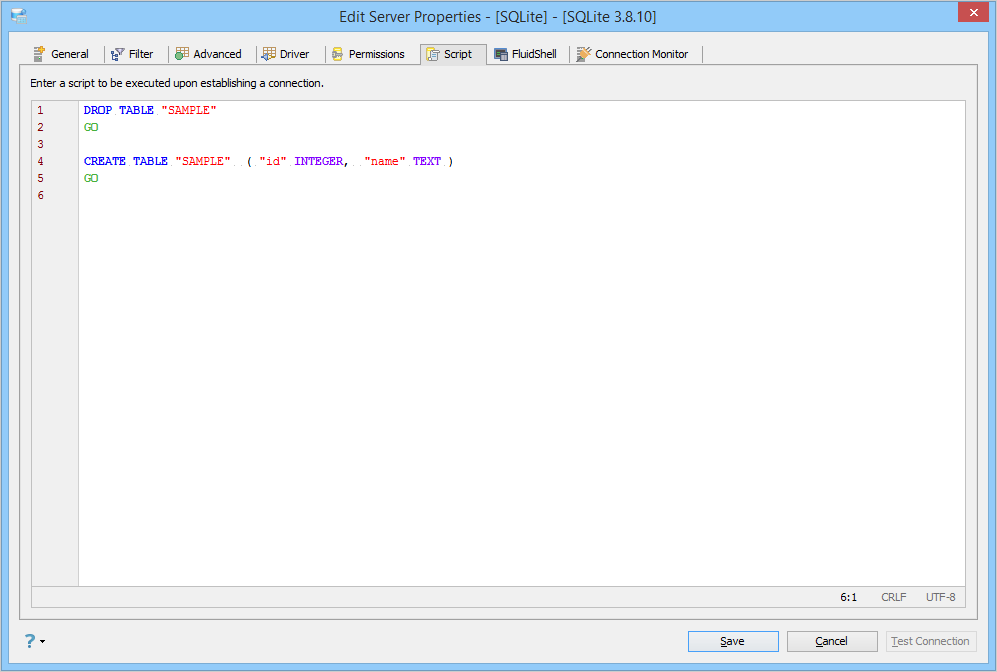 Edit Scripts in Server Properties in Aqua Data Studio: