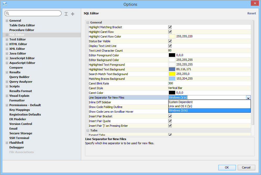 | Insert Pair ‘}’ on Pressing Enter | Automatically inserts a corresponding closing brace when you insert an opening brace. If the Insert Pair Bracket checkbox is unselected, then when Enter is pressed, the editor automatically inserts a closing brace “}.” |