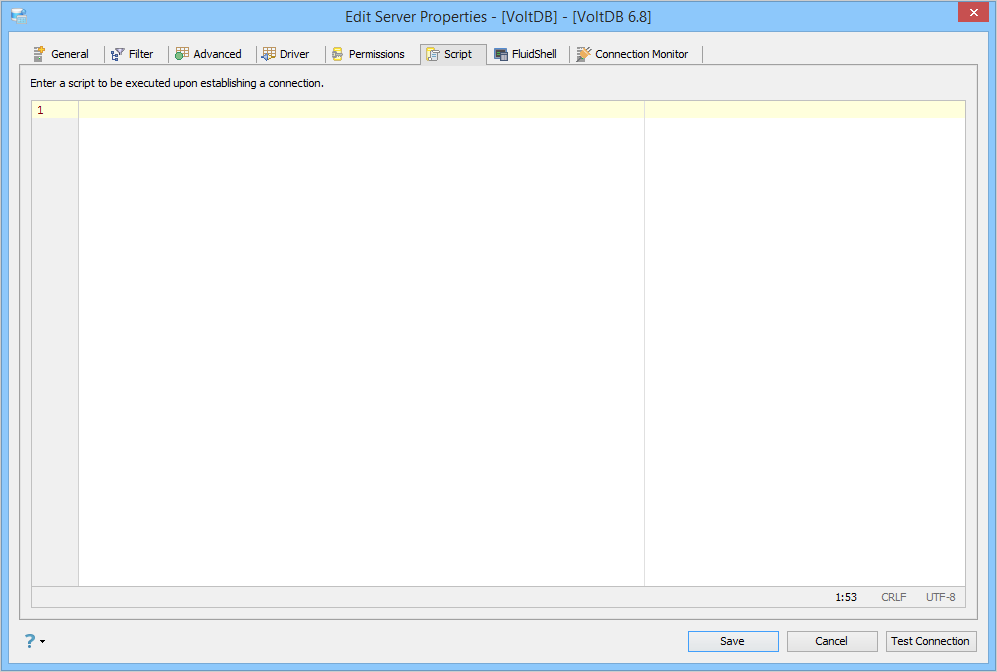 Edit Scripts in Server Properties in Aqua Data Studio: