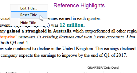 You can rename a worksheet by double-clicking the tab text. You can also left-click the tab text > from the context menu > click Rename. When the text is highlighted in blue, you can type in a new name. See Also, Chart Title.